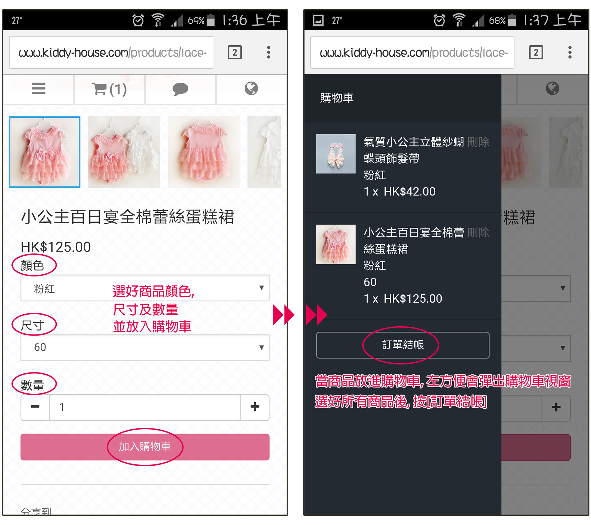 2. 只需選好顏色及尺碼, 把商品加入購物車