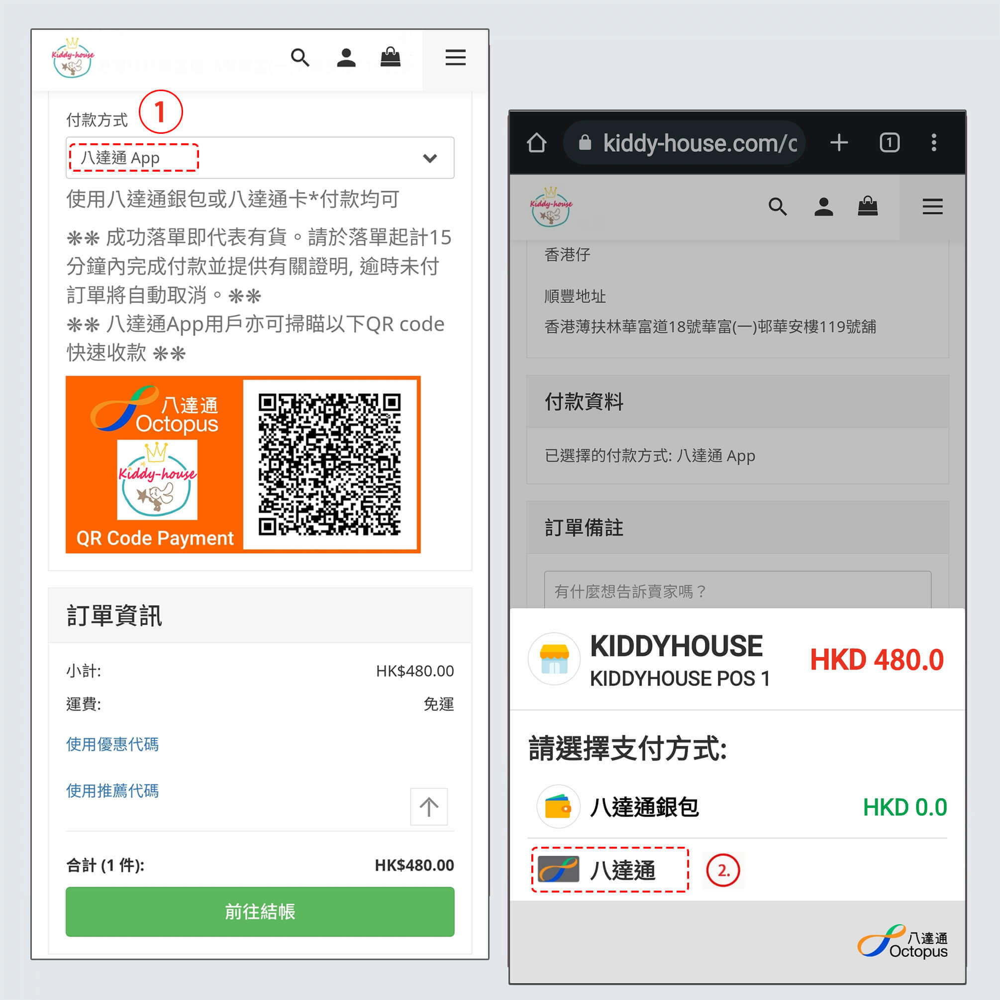 1. 建立訂單時選用「八達通」App付款, 點擊"前往結帳" ,在下一頁填寫收貨資料後點擊"提交訂單"