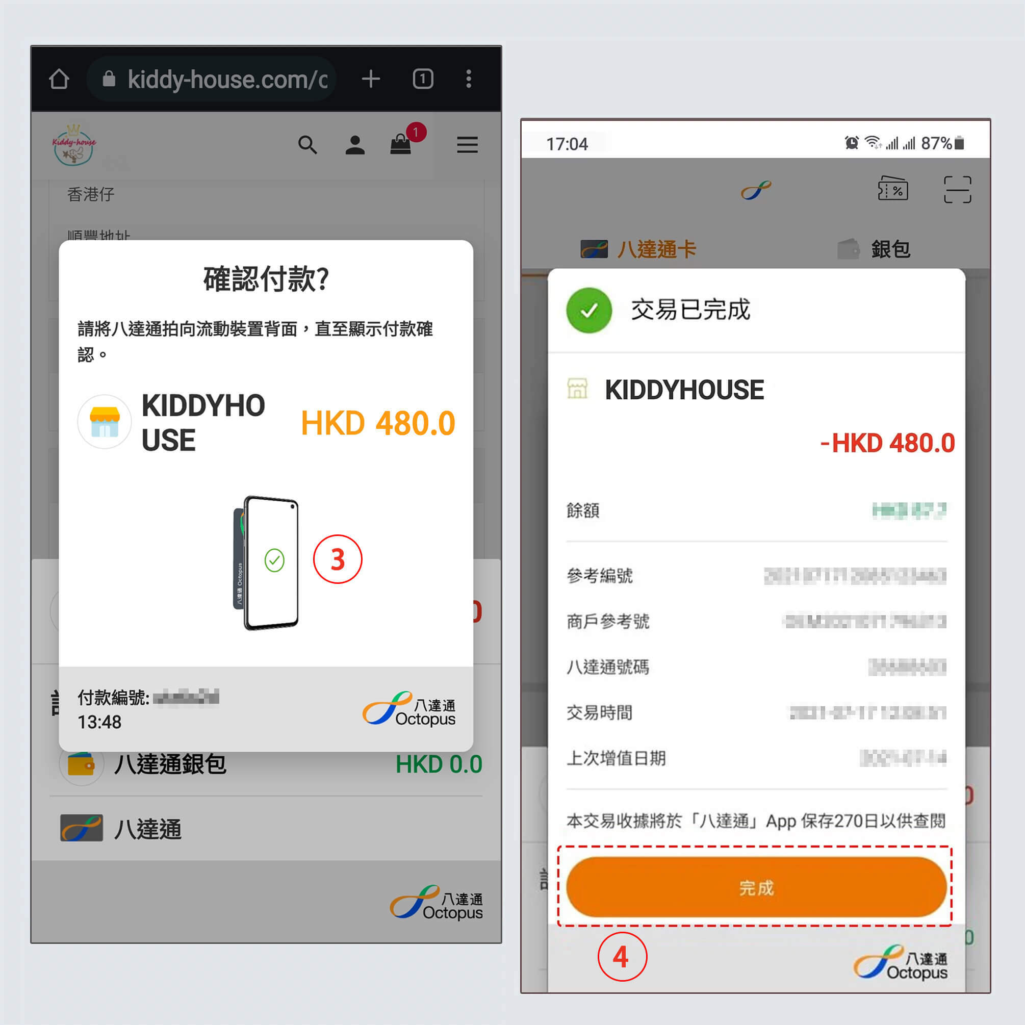 Place your octopus card at the back of your NFC device until the payment receipt is shown