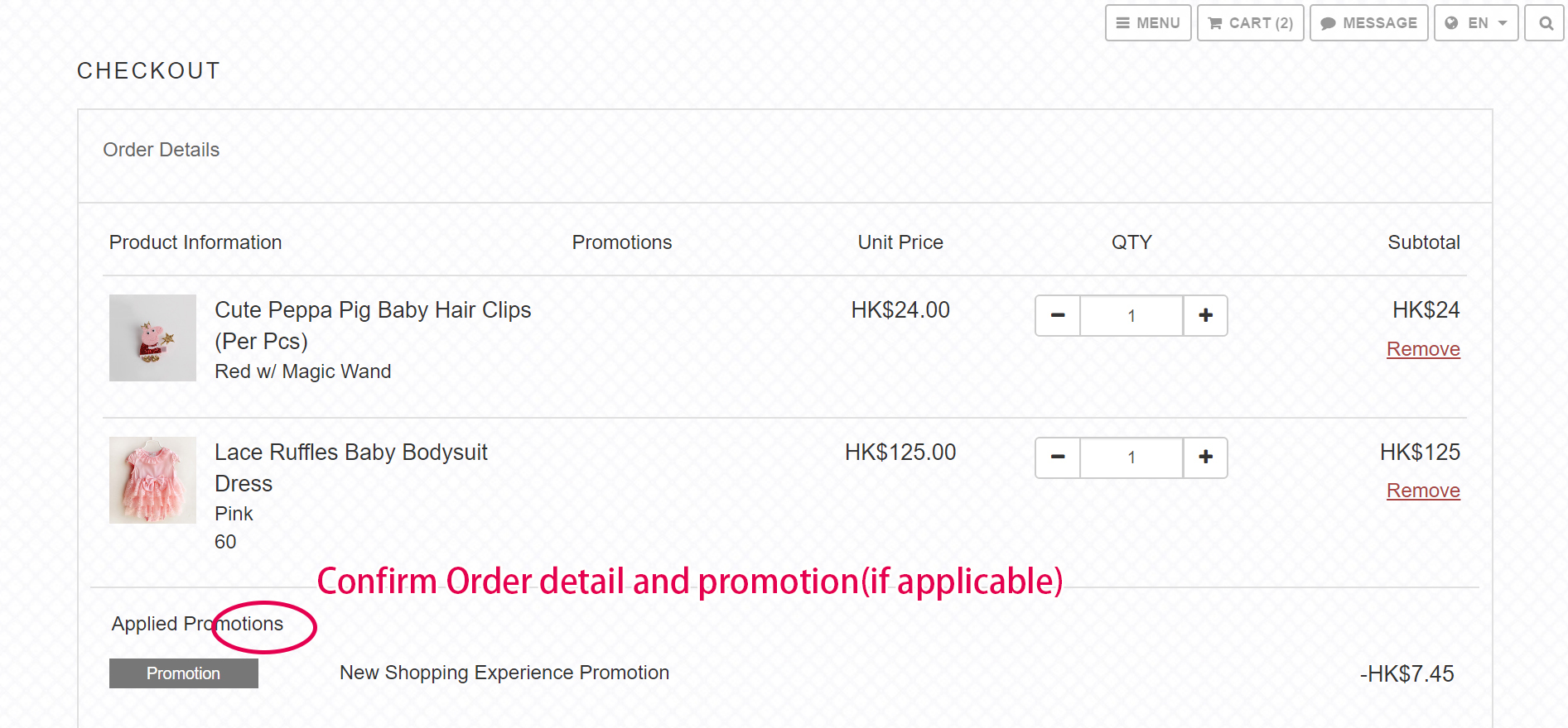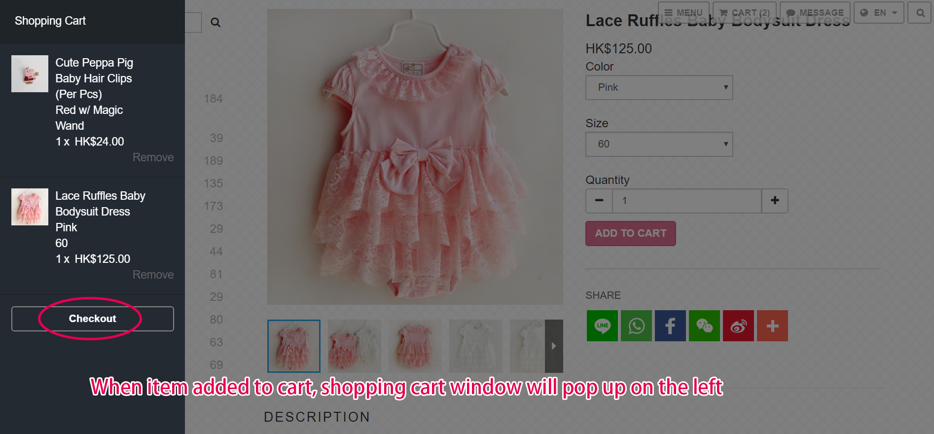 3. Click【Checkout】on shopping cart window will lead to 【Checkout】Page